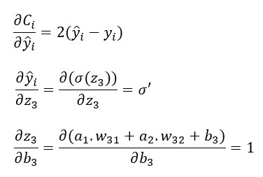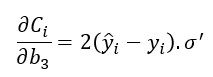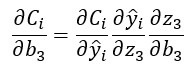 Si aplicamos el mismo proceso al cálculo de la derivada de la función de coste con respecto al bias b3, obtenemos el siguiente resultado: