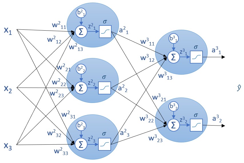 Para la primera capa (la capa de entrada), los valores devueltos por las funciones de activación (los valores <em>ai</em>) coinciden con los valores de los parámetros de entrada <em>xi</em> (es decir, con las características predictivas de la muestra que estemos considerando) pues ya sabemos que, en dicha capa, no se realiza ninguna transformación a los datos: