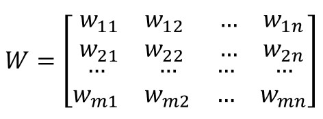 ...expresión en la que <em>m</em> es el número de neuronas de la capa y <em>n</em> es el número de neuronas de la capa anterior.