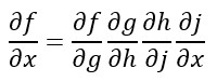 Esta regla se puede aplicar de forma iterativa. Así, si la función f depende de la función g, la función g de la función h, ésta de la función j, y j depende de x, podemos calcular la derivada parcial de f con respecto a x de la siguiente forma: