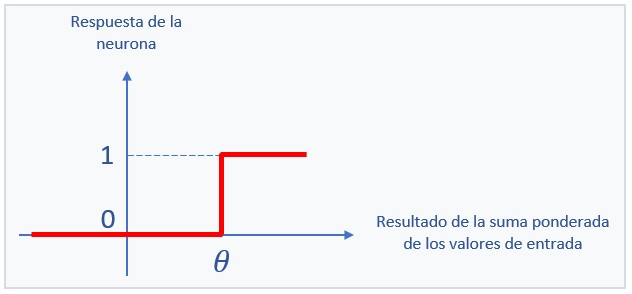 Esta función que se aplica al resultado del sumatorio recibe el nombre de <strong>función de activación</strong> y, en el caso de la neurona de Rosenblatt, se trataba de una función escalón: