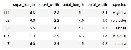 iris.sample(5, random_state = 0)