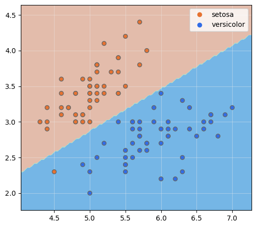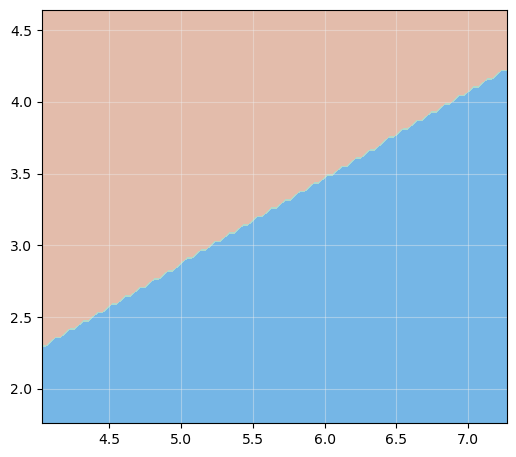 Tal y como cabía esperar, la frontera de decisión es una línea recta.