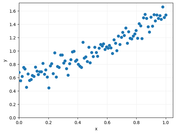 y = x + np.random.normal(loc = 0, scale = 0.1, size = 100) + 0.5
