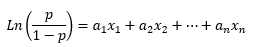 p = a1*x1 + a2*x2 + … + an*xn [2]