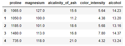 Index(['proline', 'magnesium', 'alcalinity_of_ash', 'color_intensity',
