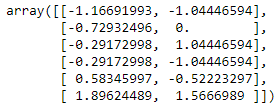 La clase sklearn.preprocessing.StandardScaler estándariza los datos eliminando la media y escalando los datos de forma que su varianza sea igual a 1. Este tipo de escalado suele denominarse frecuentemente "normalización" de los datos. Veamos un ejemplo. Partimos del siguiente conjunto de datos:
