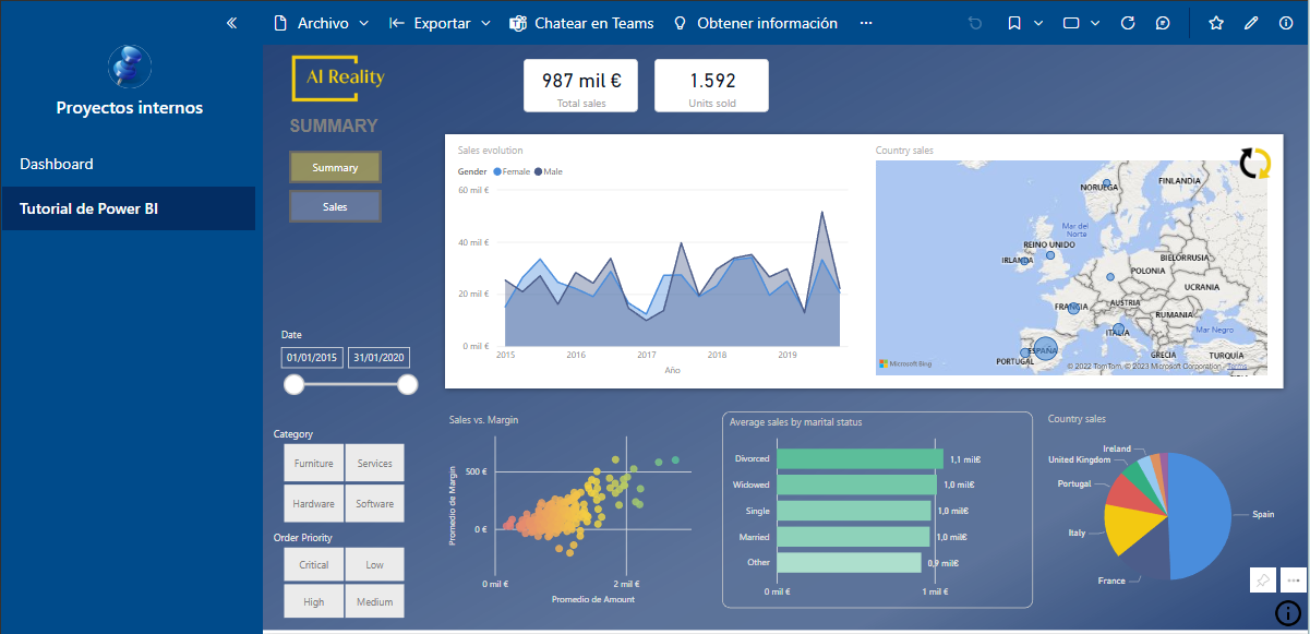 En este caso la aplicación consta de dos artefactos (un panel y un informe, en el que se ha hecho clic), aunque no es posible identificar visualmente el tipo de cada uno.