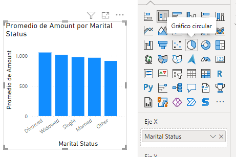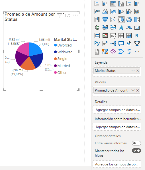 Comprobamos que los campos de configuración de un gráfico circular no son los mismos que los que teníamos en el gráfico de columnas apiladas (no tenemos un <em>Eje X</em> o un <em>Eje Y</em>, por ejemplo).