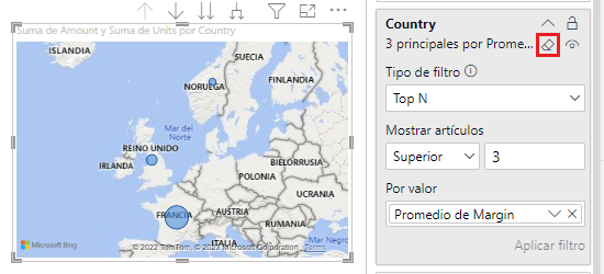 Si hacemos clic en <em>Aplicar filtro</em> (abajo a la derecha) veremos cómo se filtra el mapa: los tres países en cuestión son Francia, Reino Unido y Noruega.