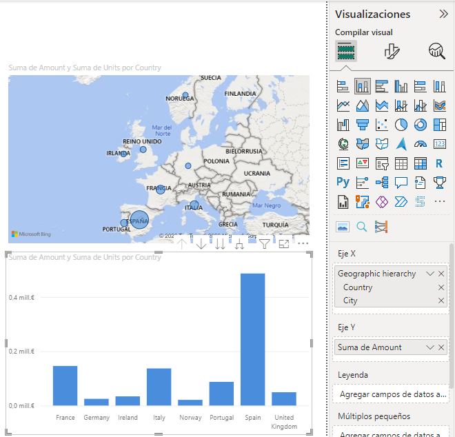 Copia el mapa y pégalo (probablemente tengas que hacer sitio en el lienzo para esto, al menos temporalmente). Selecciona la copia y conviértela en un gráfico de columnas apiladas:
