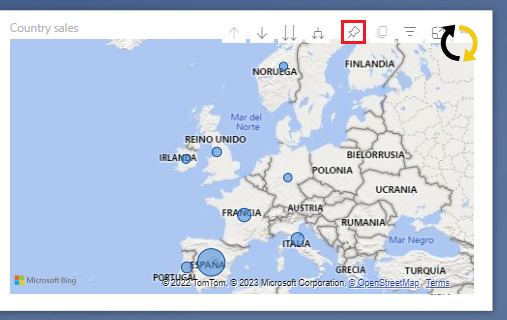 Ahora -en el Servicio Power BI- cuando movemos el cursor por encima de un objeto visual veremos aparecer un icono que no veíamos en Power BI Desktop: