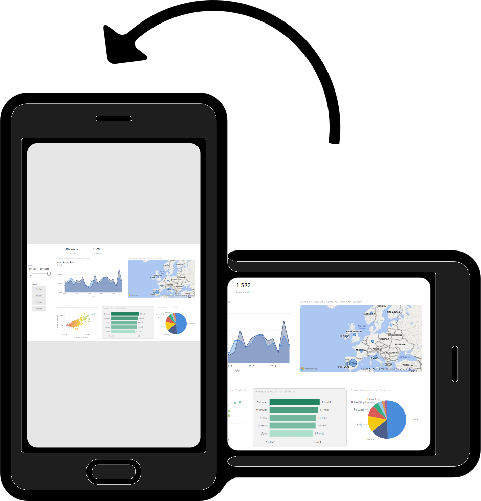 Otra excepción se produce cuando el usuario del informe usa un dispositivo móvil para acceder a él. Y, en estas condiciones, pueden ocurrir dos cosas: que el usuario sitúe el dispositivo móvil verticalmente, o que lo coloque en posición horizontal para obtener una vista en formato apaisado.