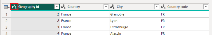 Por ejemplo, la columna <em>Geography Id</em> de la tabla <em>Geography</em> tiene asignado un tipo de número entero: