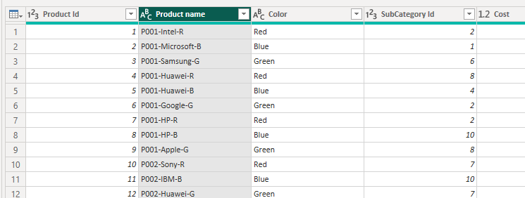 Por ejemplo, en la tabla <em>Products</em> tenemos un campo, <em>Product name</em>, que contiene el nombre de cada producto: