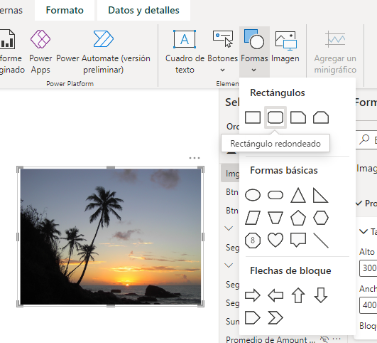 <ul><li>Esquinas redondeadas del 7% (<em>Panel de formato > Forma > Forma</em>)</li>