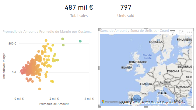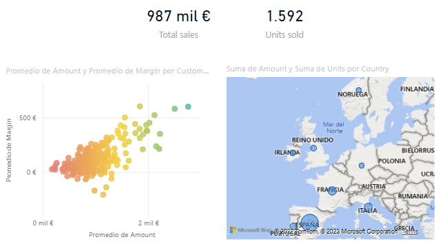 No hemos hecho clic en ninguna marca gráfica y las segmentaciones que hemos creado tampoco están realizando ningún filtrado, por lo que la información que vemos en la imagen anterior hace referencia a todo nuestro modelo de datos (a todas nuestras ventas).