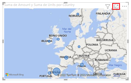 Una vez tenemos un objeto visual seleccionado, podemos ampliarlo para que ocupe todo el lienzo, herramienta que recibe el nombre de Modo de enfoque. Para ello no hay más que hacer clic en el icono adecuado de la cabecera del objeto visual: