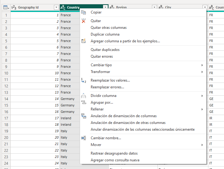 En este menú encontramos herramientas para eliminar el campo, duplicarlo, cambiar su tipo (también disponible aquí), eliminar duplicados, etc.