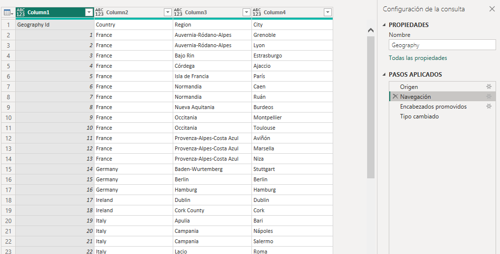 Drupal\editor\Plugin\Filter\EditorFileReference->process('Si hacemos clic en el segundo paso de los mostrados en el panel de <em>Pasos aplicados</em> sí veremos la tabla <em>Geography</em>: