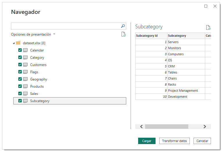 En la práctica, aun cuando el botón <em>Cargar</em> aparece destacado en verde, siempre deberíamos hacer clic en Transformar datos para, por lo menos, revisar los procesos ETL que se van a generar.