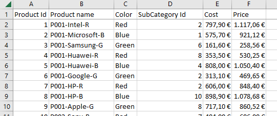 <li><strong>SubCategory Id</strong>: Identificador de la subcategoría a la que pertenece el producto.</li>